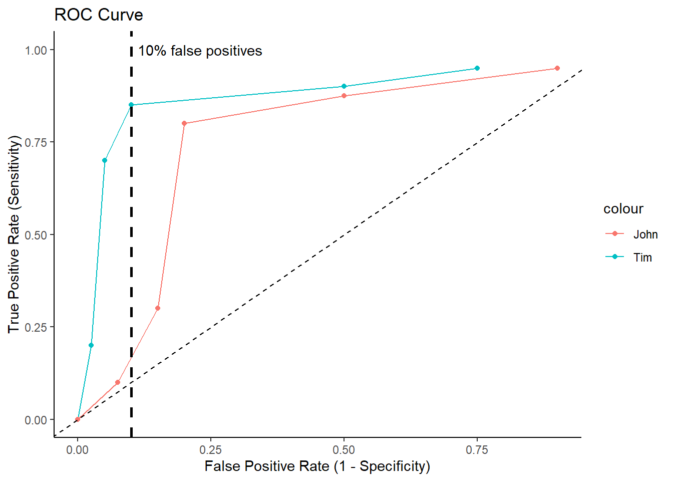 Plot ROC Curves for Tim and John